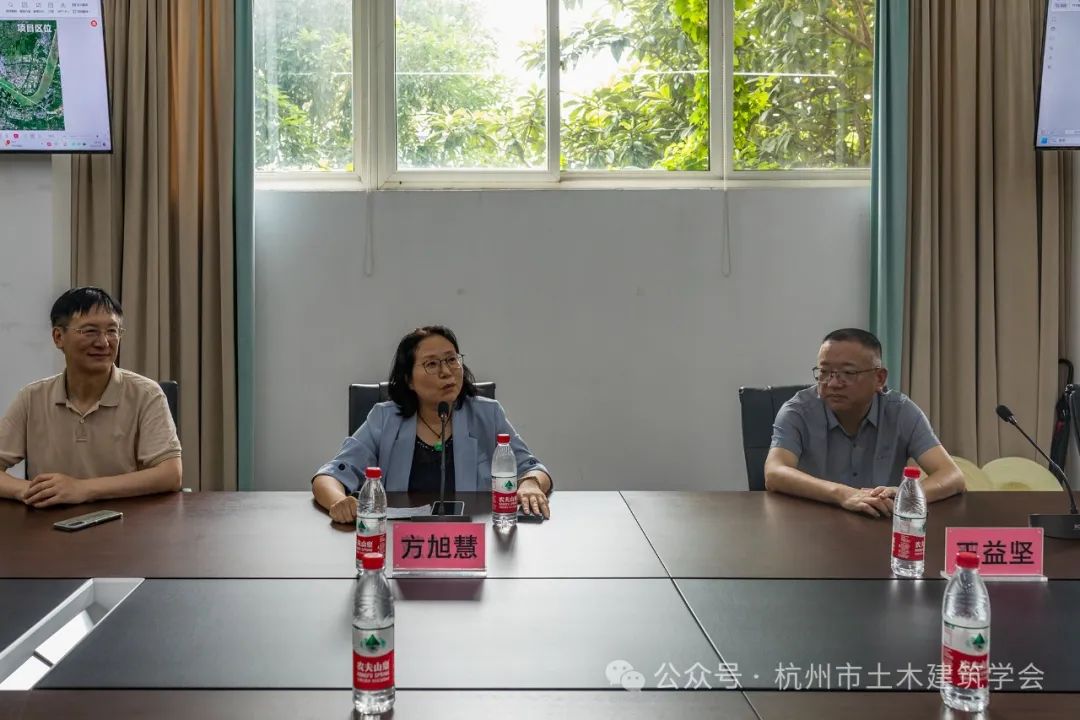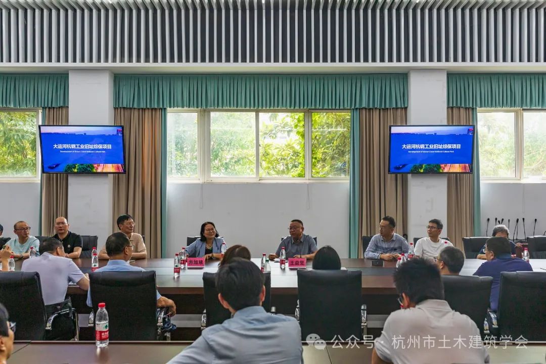 随后召开座谈会,运河辰祥工业遗址综合保护开发有限公司党支部副书记、总经理章进主持会议。座谈会中,首先运河辰祥工业遗址综合保护开发有限公司党支部委员、总经理助理戴妙娴作杭钢建设情况汇报,随后,杭州市运河集团党委委员、副总经理王益坚详细介绍了大运河杭钢项目后期规划,大运河杭钢公园总用地面积约55公顷,建筑面积约50万平方米,目前开放了近10万平方米户外公共空间,还有4.5万平方米的大规模户外草坪。场地充分实现工业遗存与生态绿植融合,满足市民日常游玩打卡、艺文体验、运动健身需求,活化“老杭钢”记忆,转向未来“新生活”,进而发展为大城北文化集合体验的新地标。