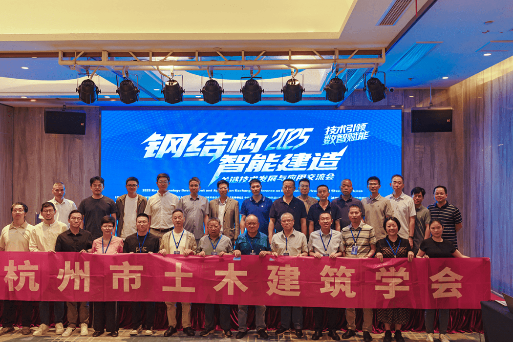 为深入探讨我国钢结构智能建造关键技术的最新发展趋势,促进技术交流与应用推广,推动钢结构行业的智能化转型升级,“2025钢结构智能建造关键技术发展与应用交流会”于2025年5月15-16日在杭州城北瑞莱克斯大酒店成功举办。本次会议由国家钢结构工程技术研究中心指导,中国装配式建筑网、国家钢结构工程技术研究中心装配式标准化建筑研究院联合主办,中国建设贸促会集成建筑委员会、浙江省钢结构行业协会、杭州市土木学会共同协办,吸引了来自全国范围内钢结构、智能建造领域的专家学者、企业代表等共计100余名代表参会。本学会组织了学会理事及专家共三十余位参加了此次会议。