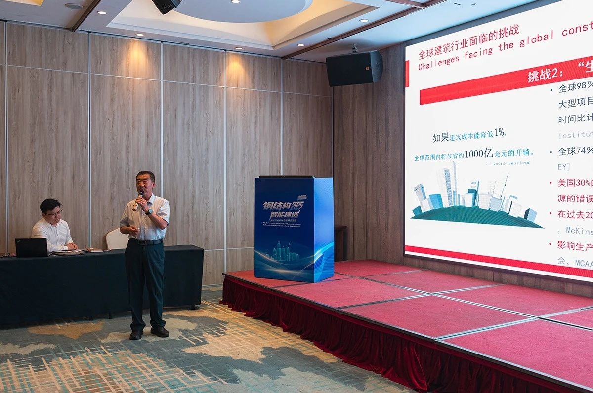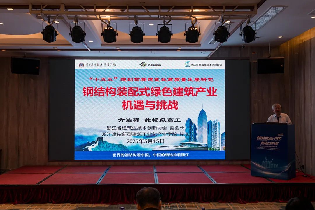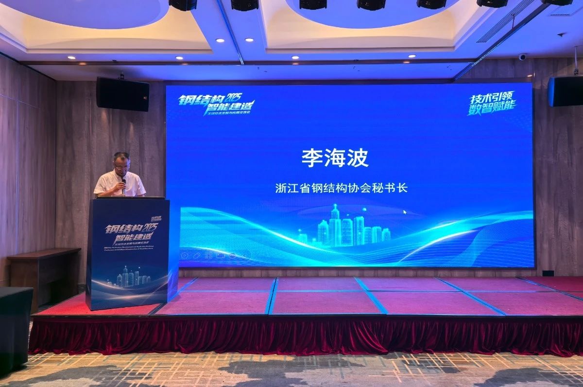 国家钢结构工程技术研究中心装配式标准化建筑研究院院长叶长征、浙江省钢结构行业协会秘书长李海波在开幕式上致辞。行业知名专家学者李霆、王立军、霍文营等作主题报告,国内优秀钢结构、智能建造企业展开交流和学习,从政策引导、技术推广、产业布局、项目实践、体系融合等方面,围绕主题报告、技术研用、项目参观、产业趋势探讨等环节展开。