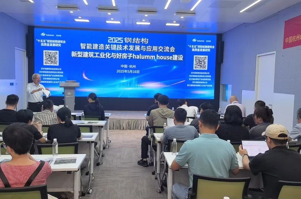 参会代表前往“汉尔姆建筑科技”的浙江省建筑工业化产业基地、杭州市“绿色低碳工厂”,参观汉尔姆装配式绿色建筑技术示范工程等各类应用场景体验中心,到汉尔姆高品质钢结构装配式住宅进行现场观摩并听取由汉尔姆建筑科技设计研究院、长三角适老化产业创新研究院副院长俞海波专题报告《科技引领专精特新,世界品质浙江制造-好房子(halumm house)成套核心集成创新技术》,进一步强化了理论与实践的结合。