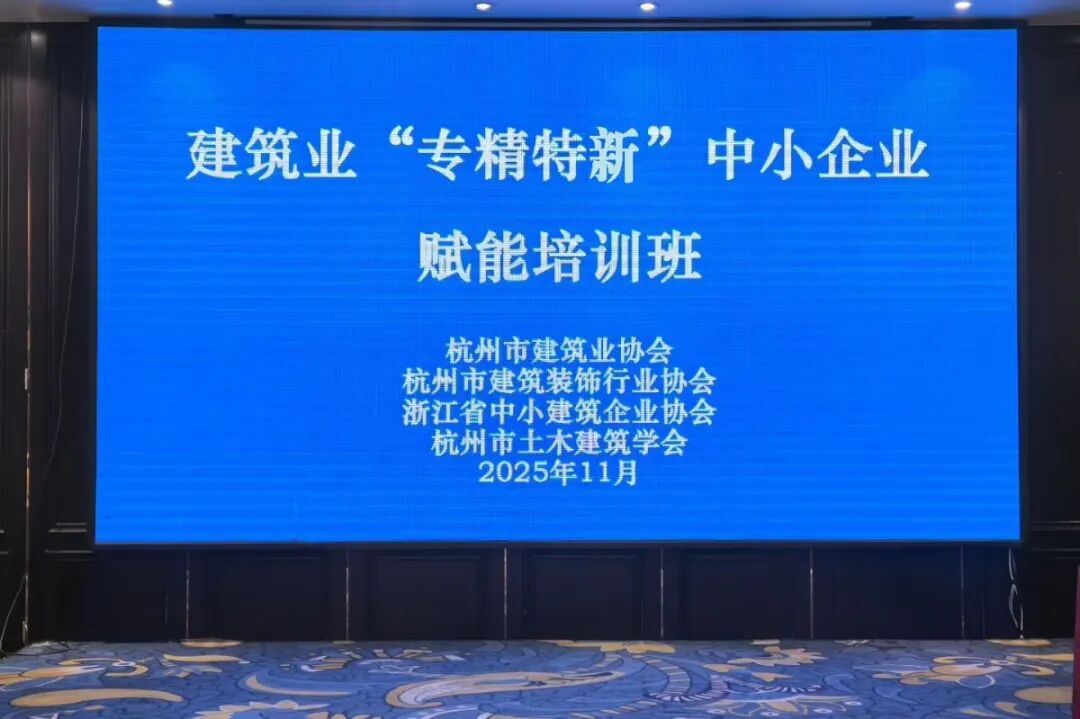 为深入贯彻落实“专精特新”企业培育政策,助力建筑业中小企业提升专业化能力、增强创新动能与产业链配套水平,2025年11月7日下午,杭州市土木建筑学会联合杭州市建筑业协会、杭州市建筑装饰行业协会及浙江省中小建筑企业协会等单位,共同举办建筑业“专精特新”中小企业赋能培训班。有意向申报建筑业“专精特新”中小企业的办公室、战略发展部、科技管理部等负责人及业务骨干共60余人参加培训。