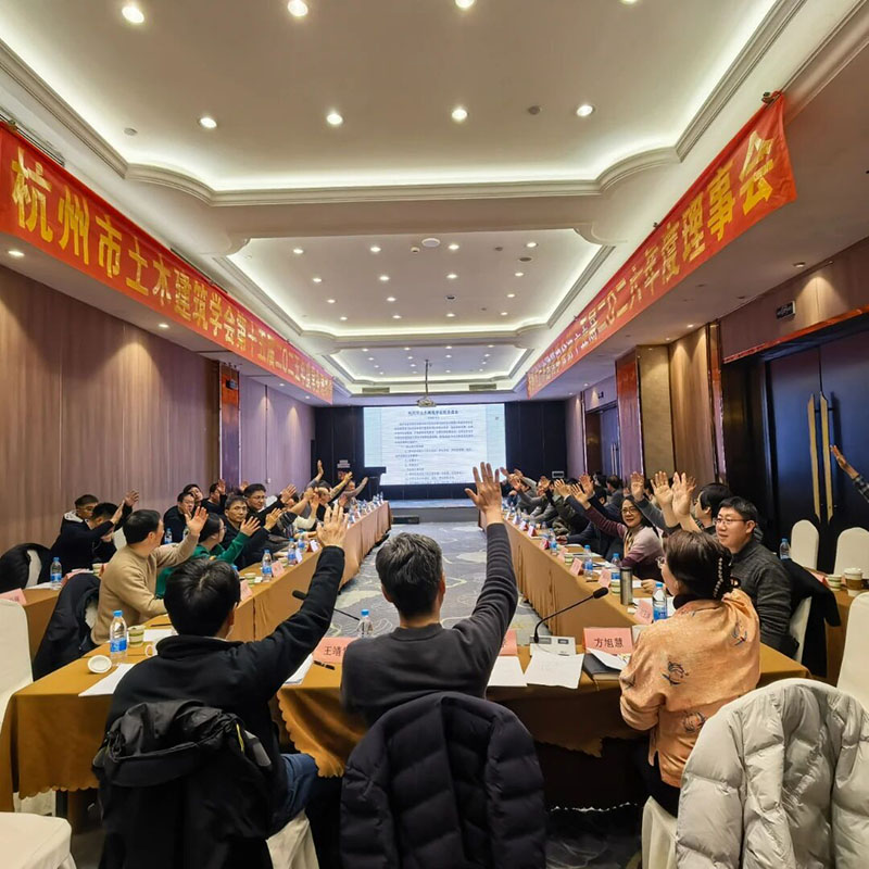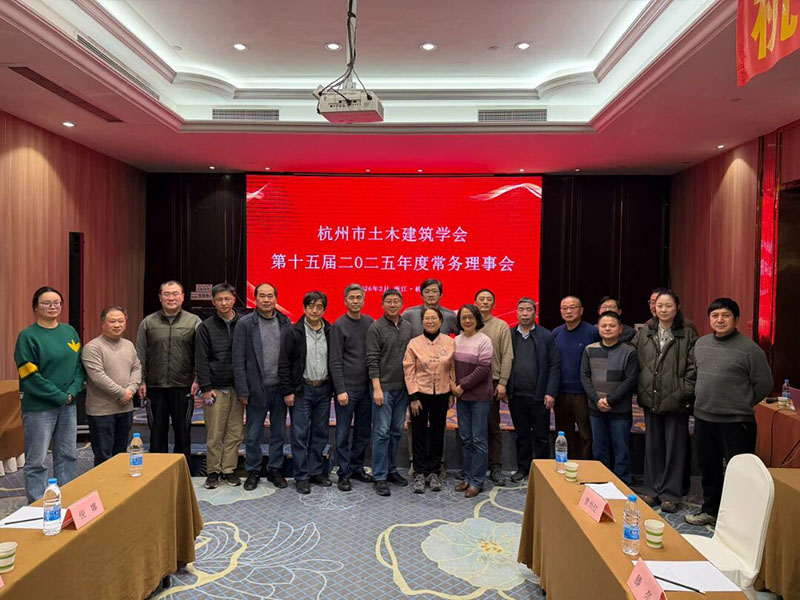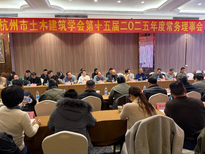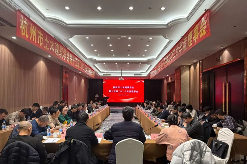 2026年2月5日下午,杭州市土木建筑学会第十五届二O二六年度理事会和常务理事会在杭州瑞莱克斯大酒店成功召开。学会理事长俞勤学、副理事长王靖华、杨书林、刘玉涛、方旭慧及理事共54人出席了本次会议。