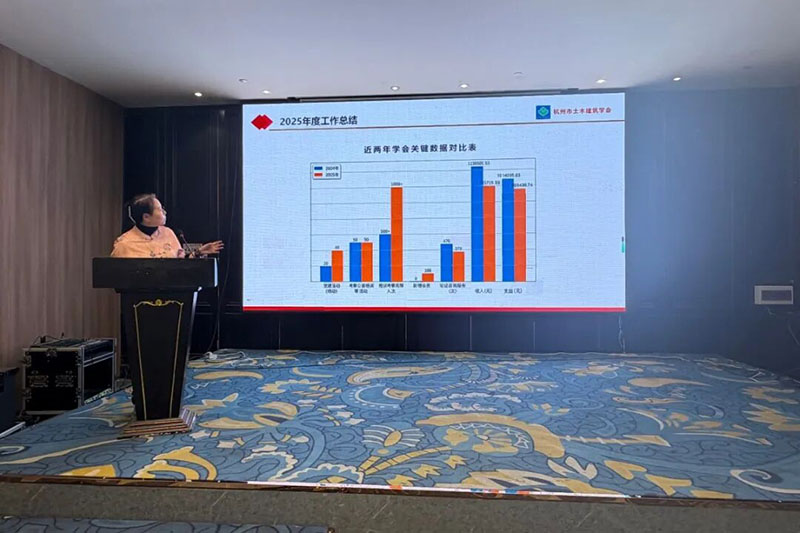 会议由学会副理事长、秘书长方旭慧主持。学会理事长俞勤学作“杭州市土木建筑学会2025年度工作报告”,副理事长、秘书长方旭慧作“2025年度学会财务报告”,监事胡琦汇报了学会2025年度监事工作报告。会议还审议了“关于新入会及退会会员的议案”、“关于同意何江辞去理事的报告”、“关于增补杭州建工集团有限公司骆利锋为学会理事的议案”和“关于合并城市规划专委会、房地产开发专委会、公共交通专委会和绿色建筑专委会为城市更新专委会的议案”。全体参会理事认真听取和审议了以上报告和议案,并以举手表决的方式一致通过。