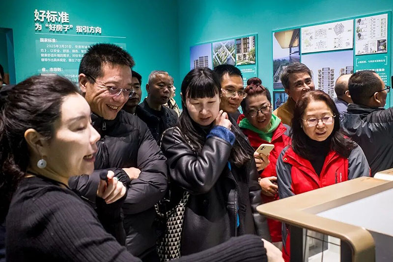在专业讲解员引导下,专家们逐一参观核心展区,重点观摩住宅品质提升、老旧小区改造、保障性住房建设、智慧家居集成、绿色建材应用等示范案例,现场交流设计理念、技术路径、标准体系与工程实践难点。